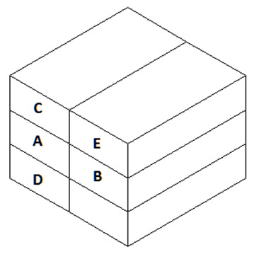 A total of 3 bricks reaches brick ‘A’ from their faces.